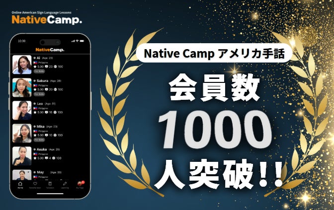 オンラインアメリカ手話サービス「Native Camp American Sign Language」を展開する株式会社ネイティブキャンプ(東京都渋谷区 代表取締役: 谷川国洋)は、このたび『Native Camp American Sign Language』の会員数が1000人を突破いたしました。