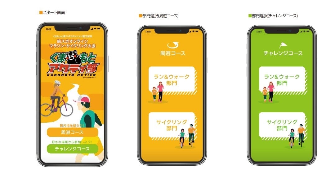 熊本県では、2021年11月30日に策定した「熊本県スポーツツーリズム推進戦略 2021‐2023) 」 に おいて 、スポーツと IoT 、熊本観光を組み合わせたスマート旅行・スポーツ コンテンツの開発を柱の一つに位置付けており、 今回、2022年1月17日に設立した「 くまもっと旅スポコミッション 」の 設立記念イベントとして「旅スポオンラインマラソン・サイクリング大会」を開催しています。この大会 は、熊本県内 各地域 の観光地を実際に巡る「周遊コース」と、 好きな場所から参加できる「チャレンジコース」の2 コースがあり、期間中に専用アプリを使用して、健康に楽しく熊本各地を巡る大会です。