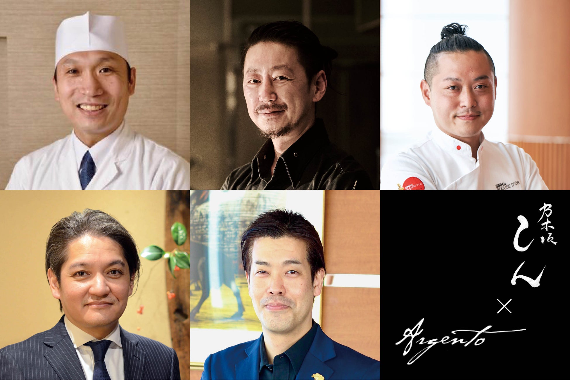 このたび初開催となる「アルジェント」と「乃木坂 しん」の一夜限りのコラボレーションガラディナーでは、「乃木坂 しん」料理長・石田伸二(いしだ・しんじ)氏と、「アルジェント」料理長・鈴木健太郎(すずき・けんたろう)、副料理長で「ボキューズ・ドール国際料理コンクール 2023」日本代表・石井友之(いしい・ともゆき)の料理人3人が、フランス料理と日本料理というジャンルを超え、お互いの持つ技術やアイデアを融合し創り上げる特別コースをご提供いたします。