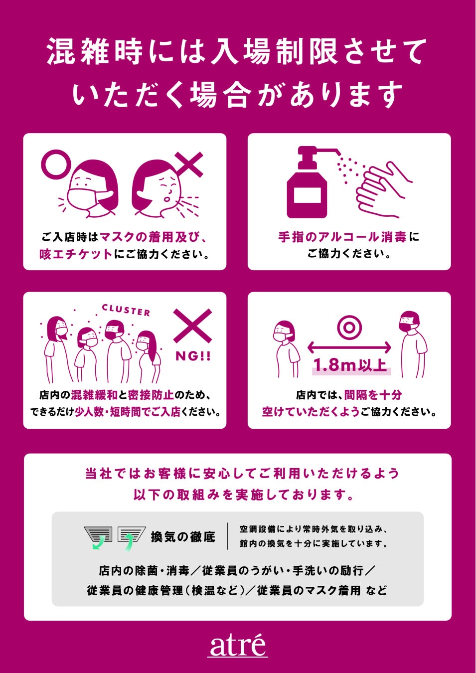 ・お客様同士の密接を防ぐため、少人数・短時間でのご入店