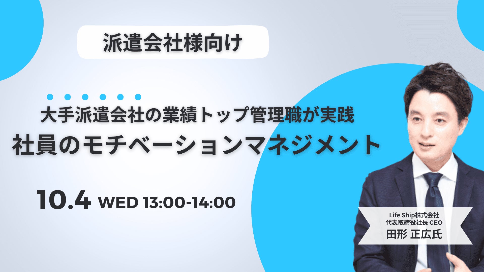 【10/4開催】大手派遣会社の業績トップ管理職が実践した「社員のモチベーションマネジメント」とは?