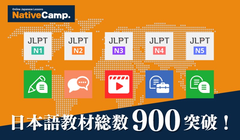 株式会社ネイティブキャンプ(本社:東京都渋谷区、代表取締役社長:谷川国洋)が提供するオンライン日本語会話サービス『Native Camp Japanese』は、このたび、日本語学習教材の総数が900を超えましたことをお知らせいたします。