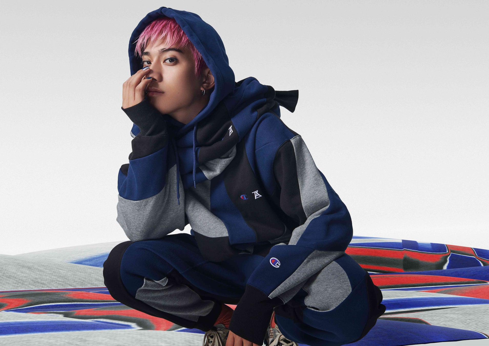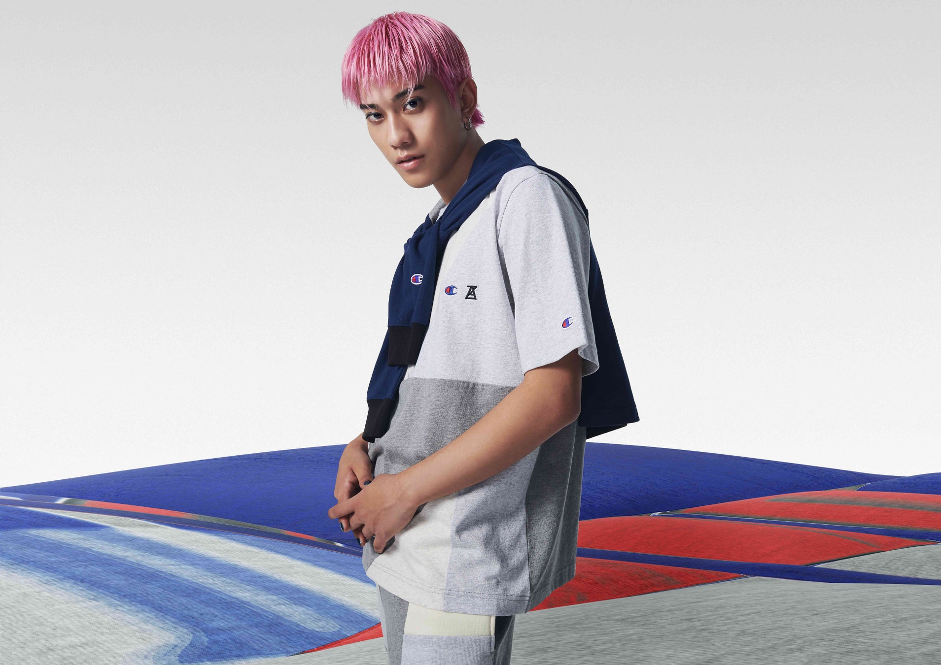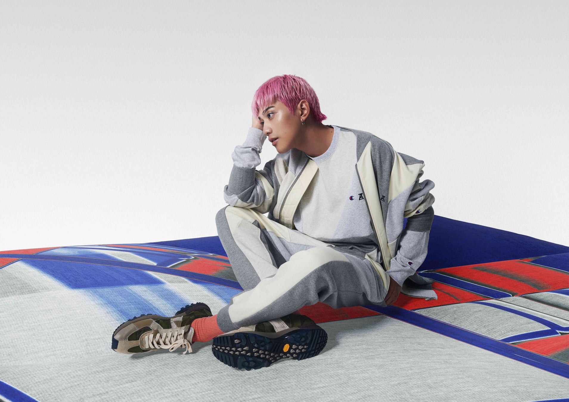 Championのベーシックな素材を異なるカラーと記号でパッチワークすることで、デザイン性と日常使いを共存させ、ChampionとANREALAGEの特長をコレクションに落とし込みました。
