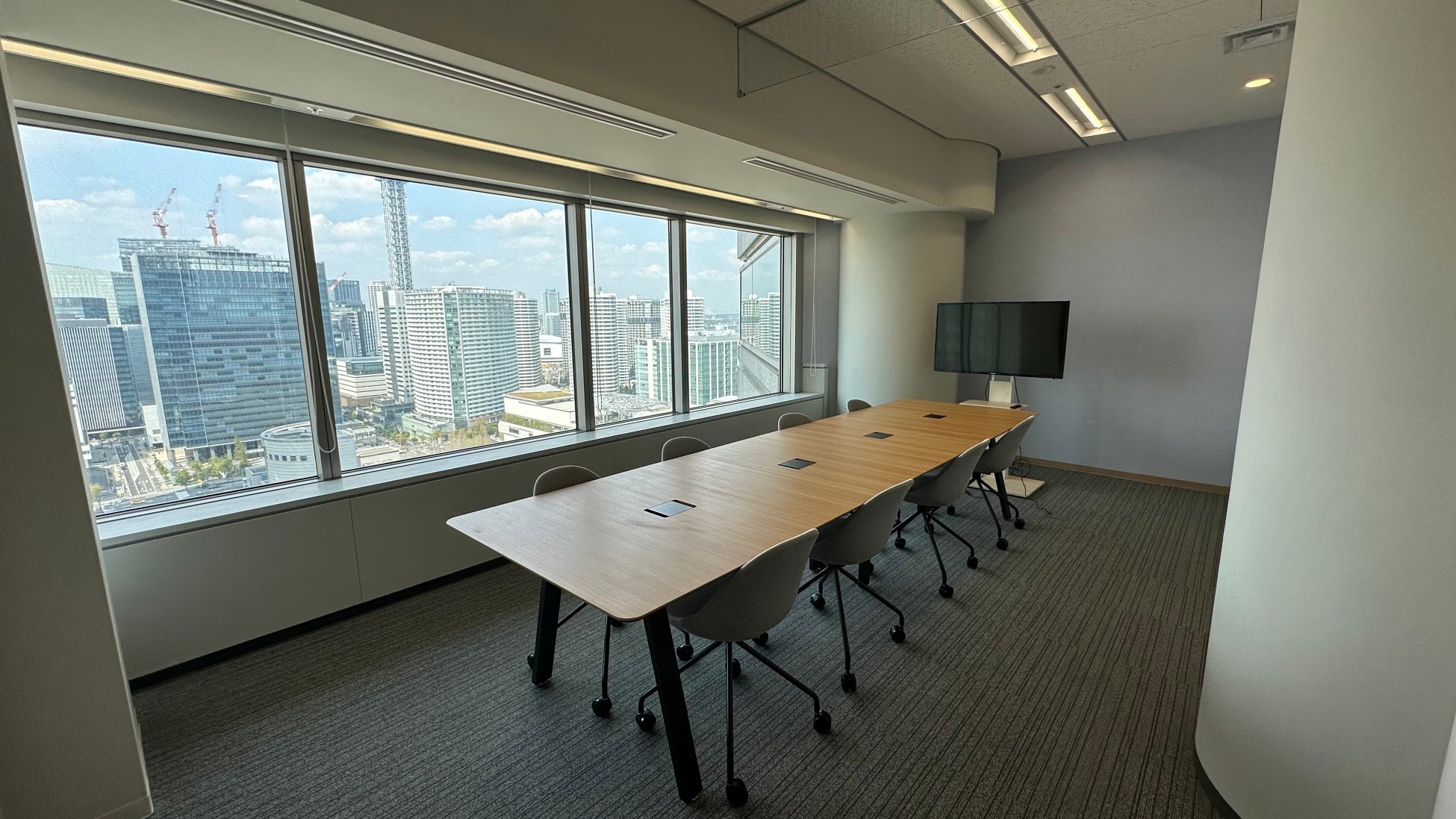 一面ガラス張りで、解放感があり、デザイン性の高い仕上がりの空間になります。疲れた目をみなとみらいの景色で癒し、集中した業務の一時の癒しになる効果を期待しています。また、圧迫感を軽減し、上長との距離を縮める効果を期待し、全席フリーアドレスにしました。