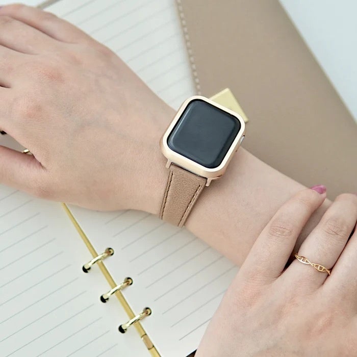 シンプルで使いやすい本革製のアップルウォッチバンドです。無地のデザインが素材の高級感を引き立てます。オンオフ問わず、コーディネートも選ばないベーシックな色展開も魅力です。