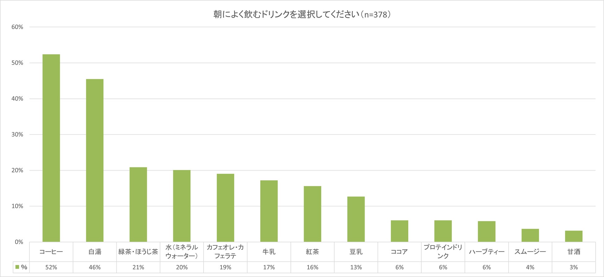 ・朝によく飲むドリンク、「白湯」が約50%