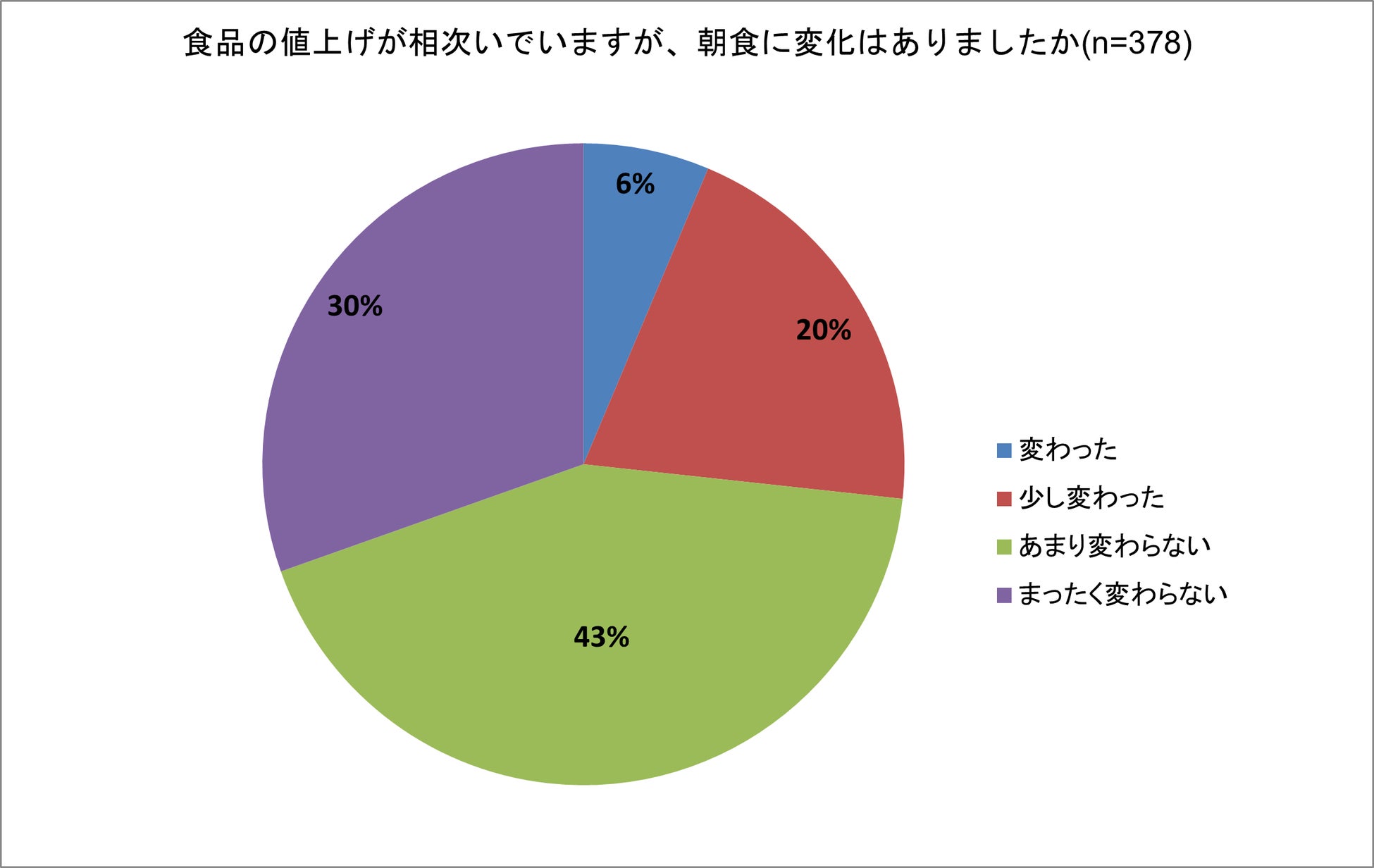・食品の値上げによる朝食の変化、約3割が「変化があった」