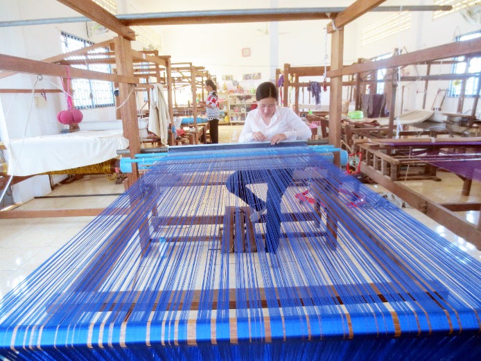 KnKチャリティランナーにはカンボジアの自立支援施設「若者の家」で製作した青いたすきをお渡しします。