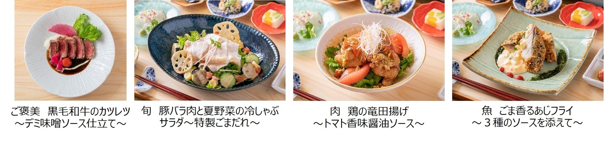 従来はランチのご予約限定で提供していましたが、6月1日の夏メニューよりディナーでも登場します。数々のお肉料理を堪能いただける創作料理で、上質な素材を厳選し、一品ずつ丁寧に美しく表現した自慢の逸品です。