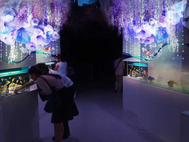 海の世界の中で、「水の流れ」から生まれる新しい花の美しさを体感していただく幻想空間。