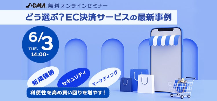 公益社団法人日本通信販売協会(東京都中央区日本橋小舟町3-2リブラビル2階/略称:JADMA)では、決済サービス事業者7社を講師とするオンラインセミナー「どう選ぶ?EC決済サービスの最新事例」を、6月3日(火)に開催いたします。