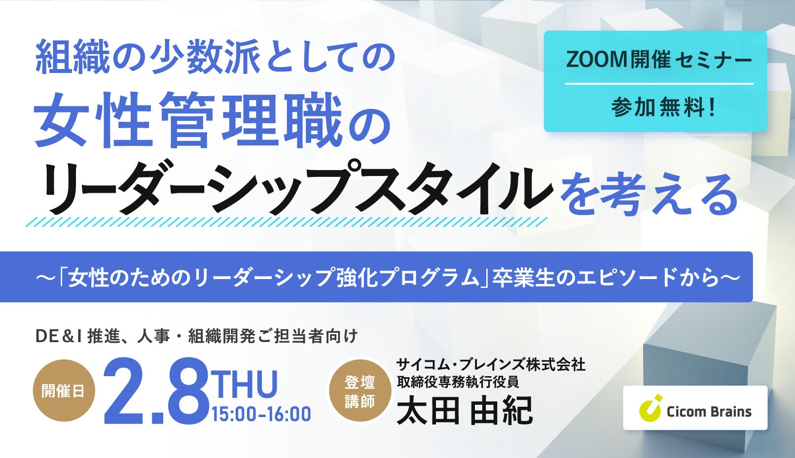【組織の少数派としての女性管理職のリーダーシップスタイルを考える】サイコム・ブレインズ、取締役専務執行役員太田由紀によるオンラインセミナーを2月8日(木)に開催