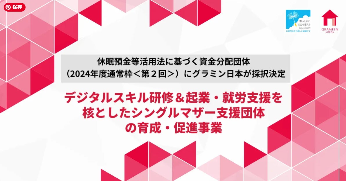 一般社団法人 グラミン日本(本社:東京都中央区、理事長:百野 公裕、以下「グラミン日本」)は、一般財団法人日本民間公益活動連携機構(所在地:東京都千代田区、理事長:二宮 雅也、 英文名:Japan Network for Public Interest Activities、略称:JANPIA)が公募する「2024年度 通常枠 <第2回> 休眠預金等活用法に基づく資金分配団体」に選ばれましたのでお知らせいたします。助成予定額は1.78億円で、グラミン日本としては2021年度、2023年度に次ぐ3度目の採択となります。