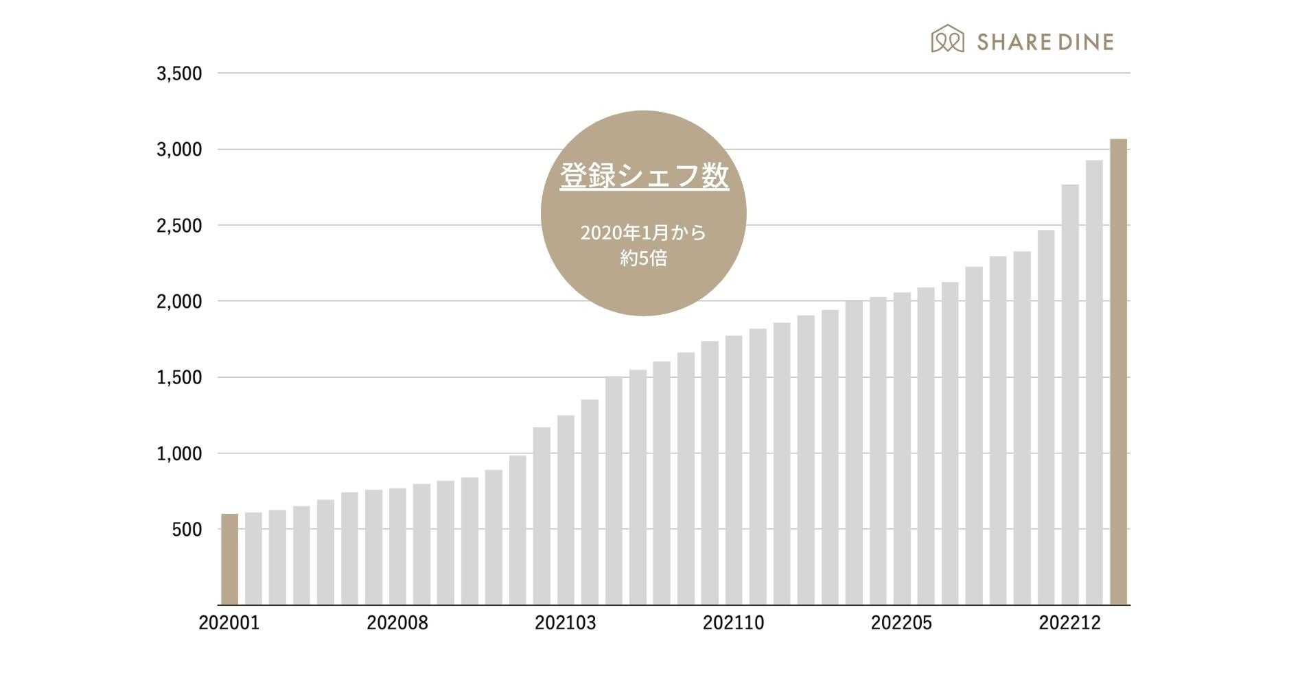 出張シェフサービス「シェアダイン」を運営する株式会社シェアダイン(本社:東京都港区、共同代表:井出 有希、以下シェアダイン)は、登録するシェフの人数が3,000名を突破しましたことをお知らせします。シェアダインは料理人が安定して稼ぐことができ柔軟な働き方が叶うプラットフォーム・料理人のキャリアプラットフォームとなるべく、登録シェフの支援体制を強化し、発信を続けてきました。その結果、シェフ登録数でコロナ禍以前と比較し5倍超の規模へ成長し、現在は出張料理サービス(※1)9社の中で、「シェフ認知度(※2)」「キーワード検索数(※3)」のNo.1を獲得するサービスとなっています。