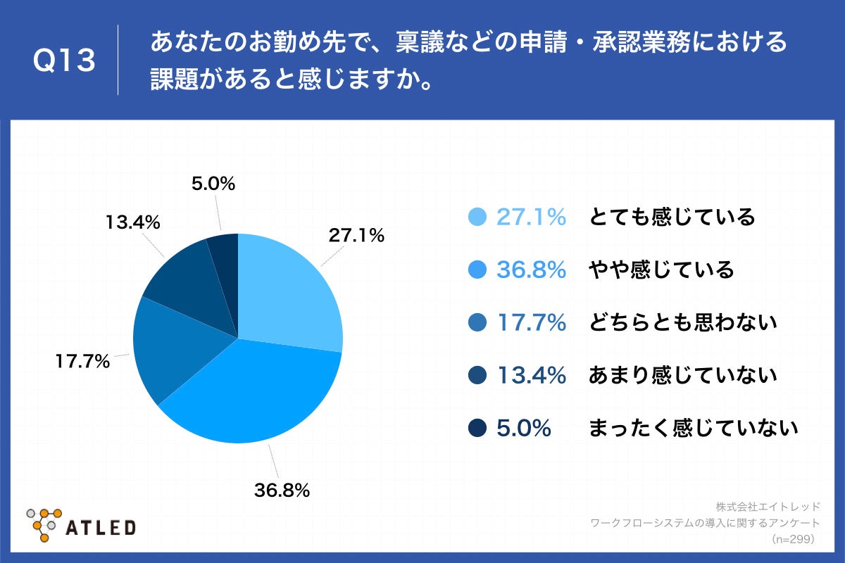 - ワークフローシステム未使用の63.9%の担当者が、稟議などの申請・承認業務における課題を実感