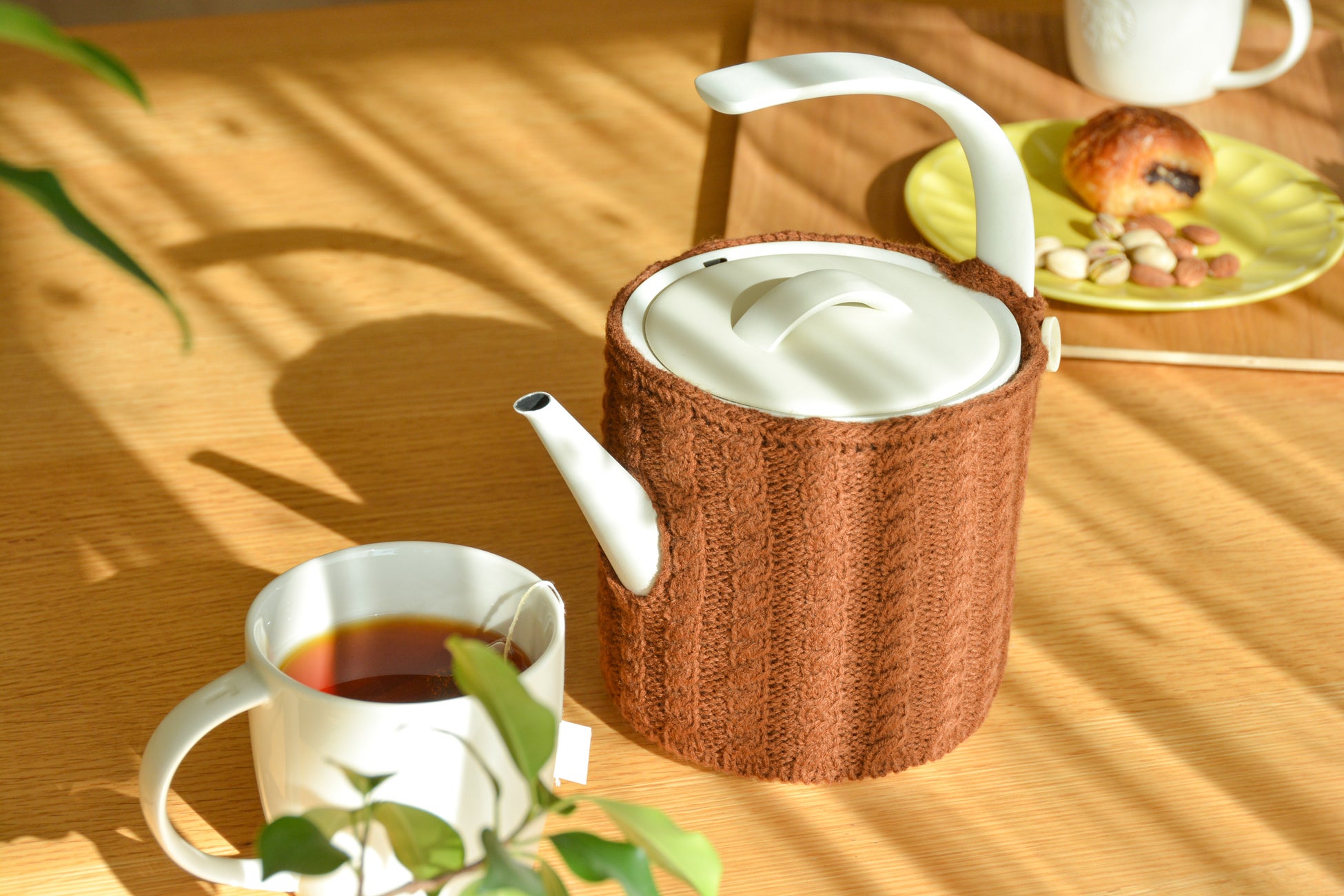 素朴でぬくもりあるコージー。まるでケトルがカーディガンを着ているようなデザイン。火傷防止としての機能性とティータイムが楽しくしてくれるアイテムです。プレゼントにも喜ばれる可愛らしいアイテムとなっています。