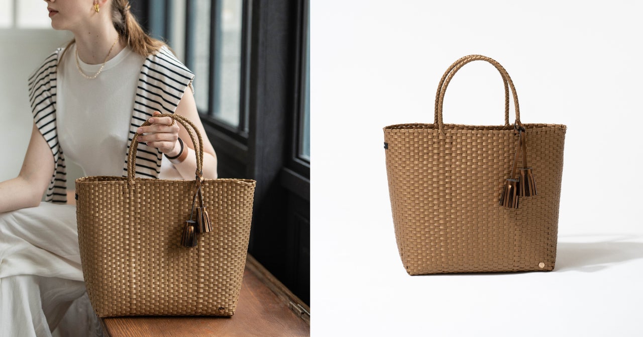 シンプルで上品なデザインが人目を引く、大容量メルカドバッグ。