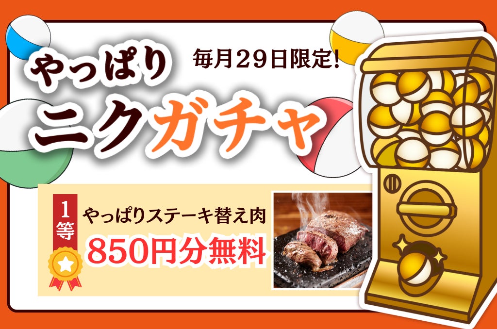 ■ニクの日限定!絶対お肉のクーポンが当たる「やっぱりニクガチャ」登場!