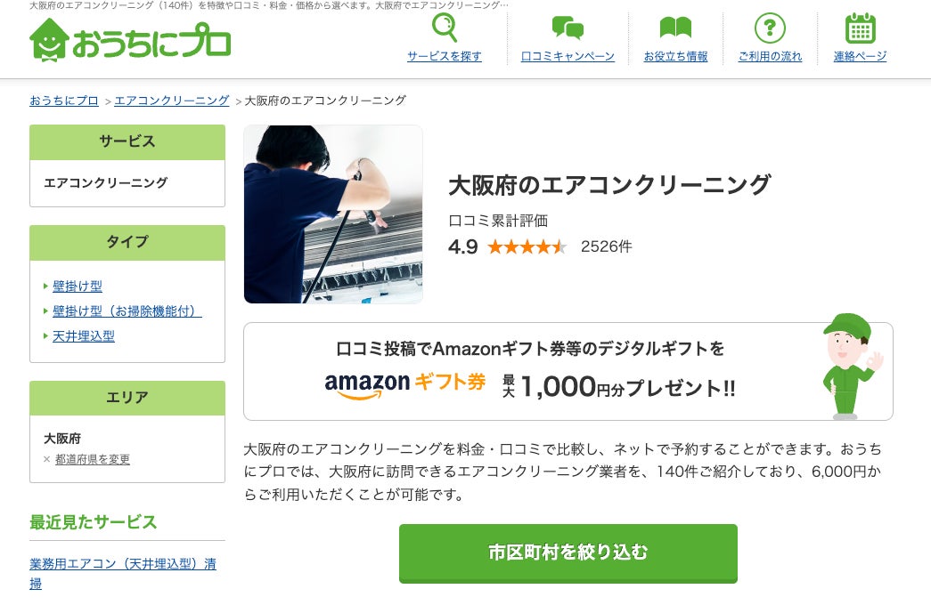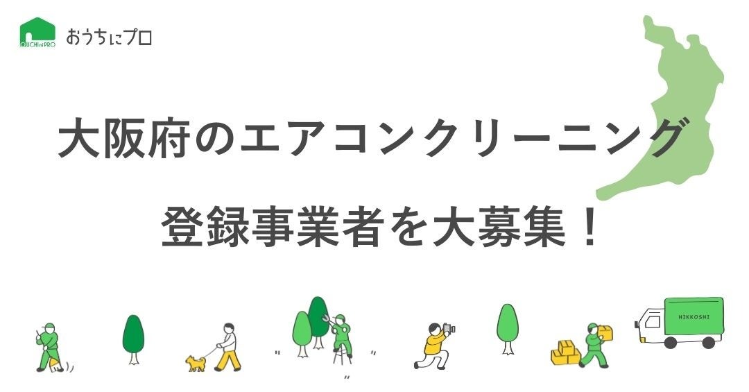 エアコンクリーニング・ハウスクリーニングの予約サイト「おうちにプロ」では、大阪府で施工可能なエアコンクリーニング業者を大募集しております。