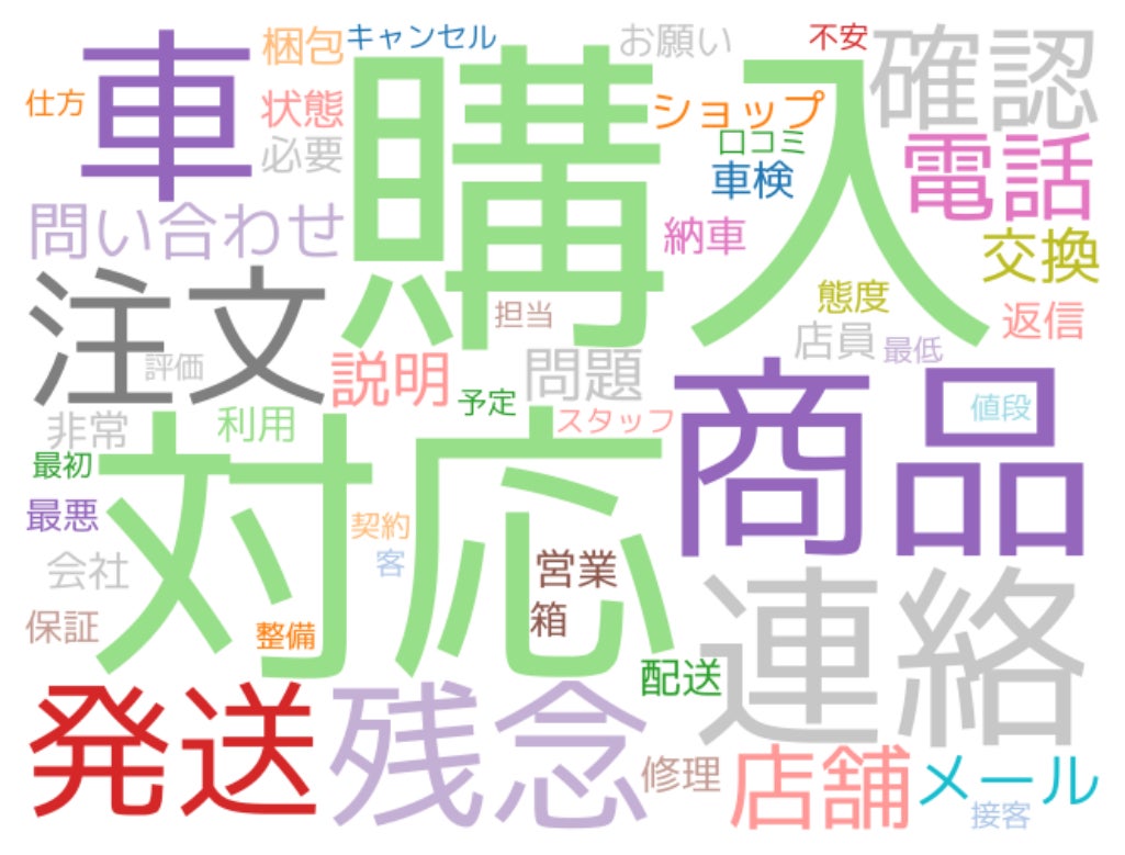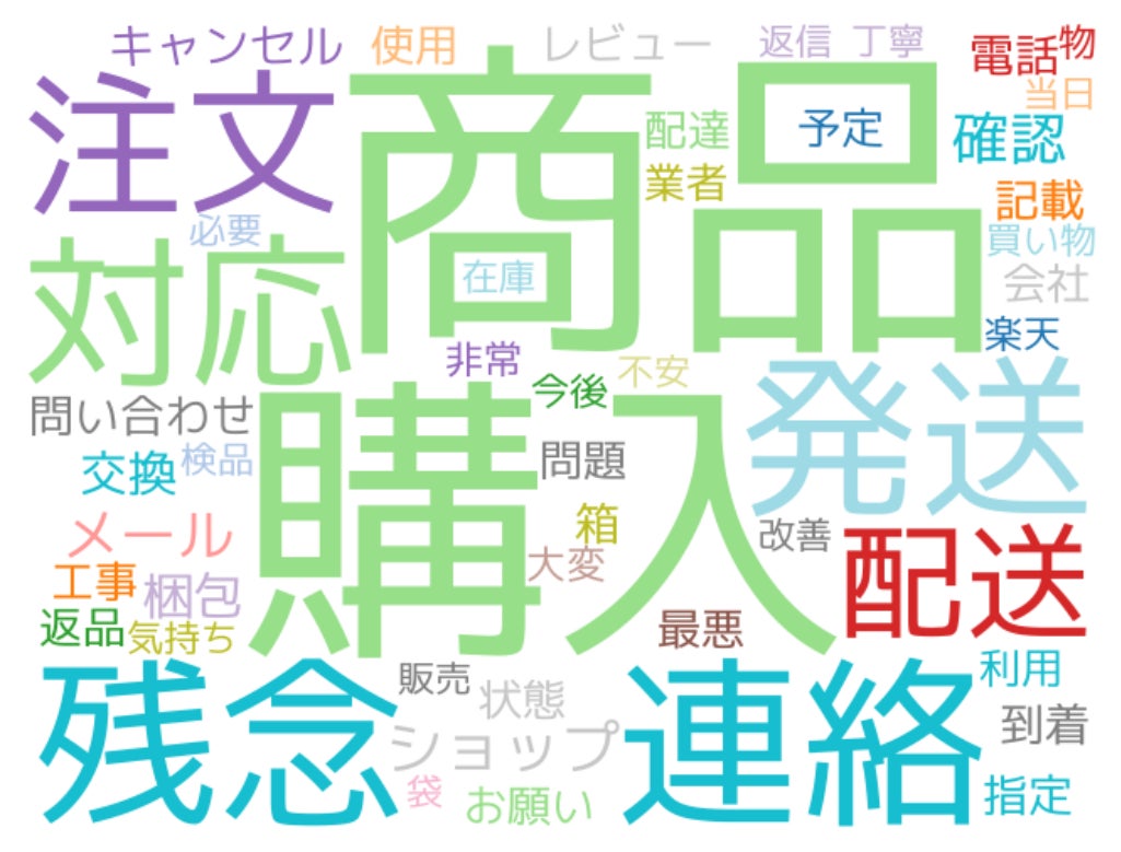 クレームの内容としては、不良品や配送に関する問い合わせに対して返答が遅いことを不満に思う投稿が多くありました。また、指定日配達に届かないことや、注文後になかなか発送されないことに対してのクレームが多く発生していることから、想定していた日に注文した品が届かないことがクレーム増加の原因となっていることがわかりました。
