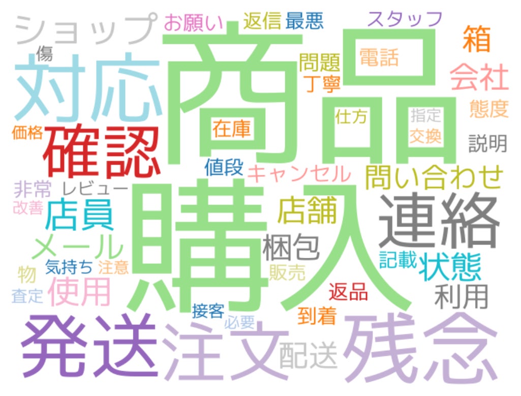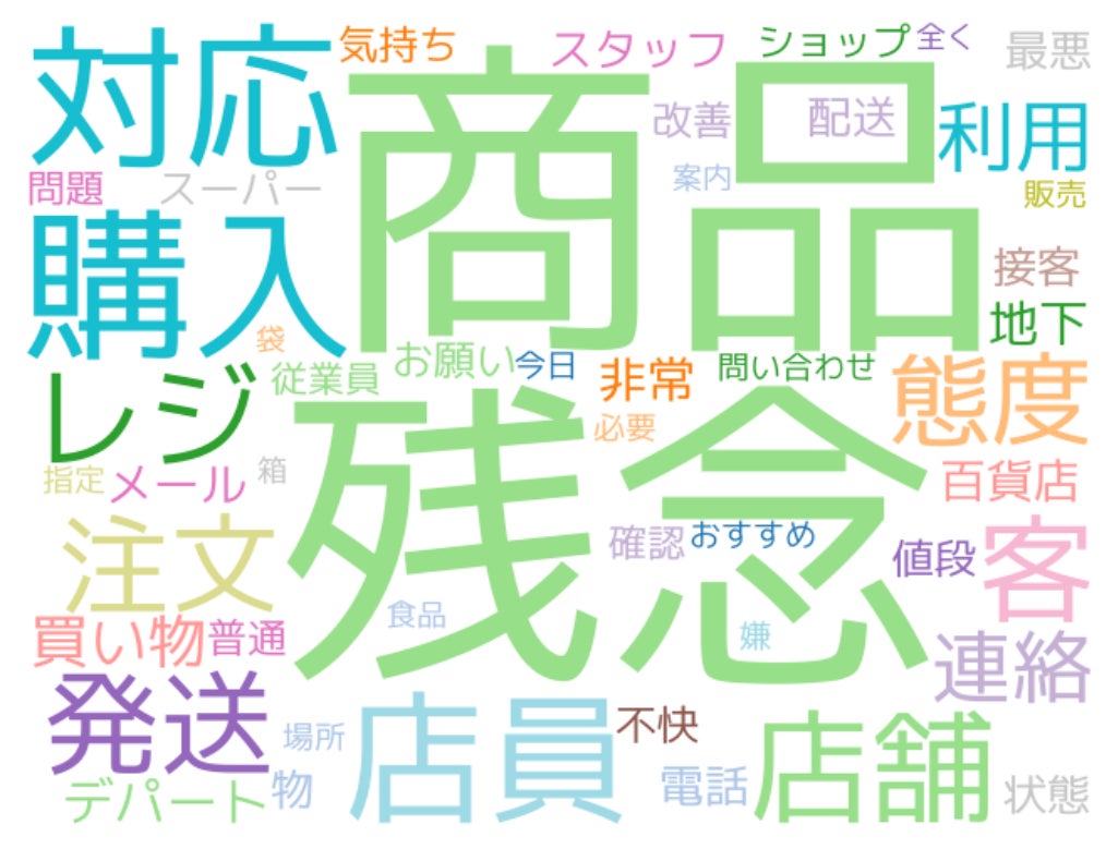 〈各種商品小売業の悪評・クレーム頻出単語〉