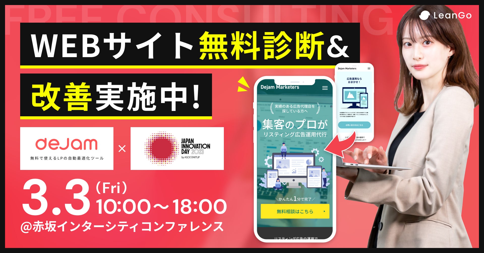 【JAPAN INNOVATION DAY 2023出展概要】dejamを運営するLeanGoが赤坂インターシティコンファレンスでCVR改善の無料相談会を開催!