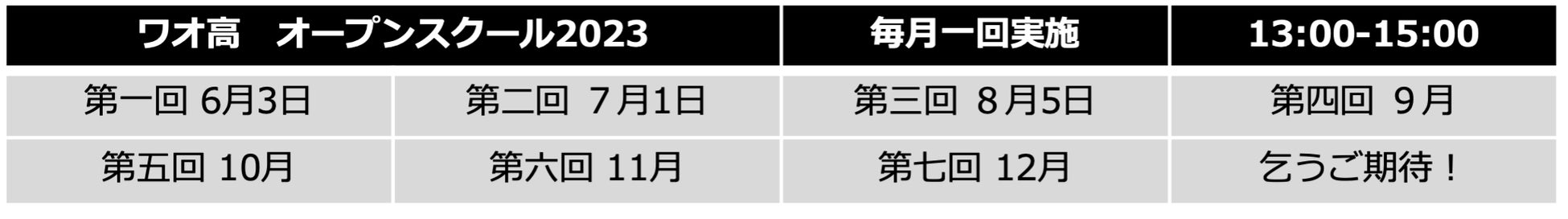 ワオ高 オープンスクール2023 第一回 6月3日 13:00-15:00 (申込期限 6/2(金)15:00)