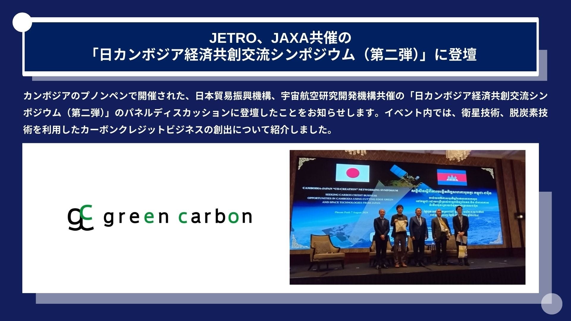 Green Carbon株式会社は、JETRO、JAXA共催の「日カンボジア経済共創交流シンポジウム(第二弾)」に登壇