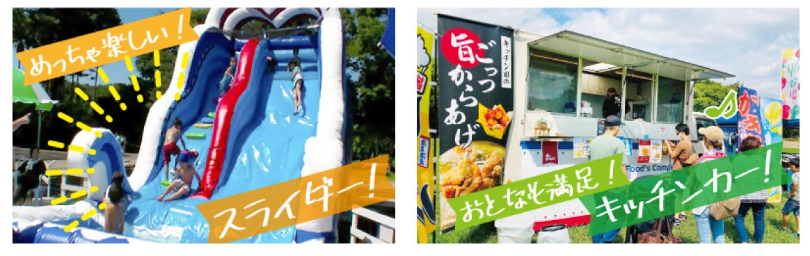 昨年、新型コロナウイルス感染症の影響で開催できなかった「ぽよじゃぶウオーターパーク」が今年復活。大型のバルーンプールと大小2台のウオータースライダーで0歳の子どもから中学生まで楽しめます。キッチンカーの出店もありますので家族みんなで楽しめるイベントです。