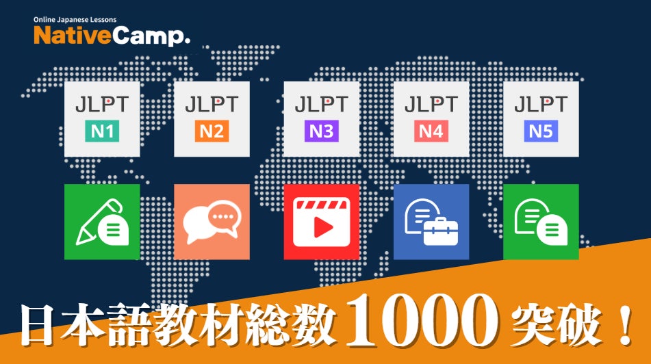 株式会社ネイティブキャンプ(本社:東京都渋谷区、代表取締役社長:谷川国洋)が提供するオンライン日本語会話サービス『Native Camp Japanese』は、このたび、日本語学習教材の総数が1000を超えましたことをお知らせいたします。