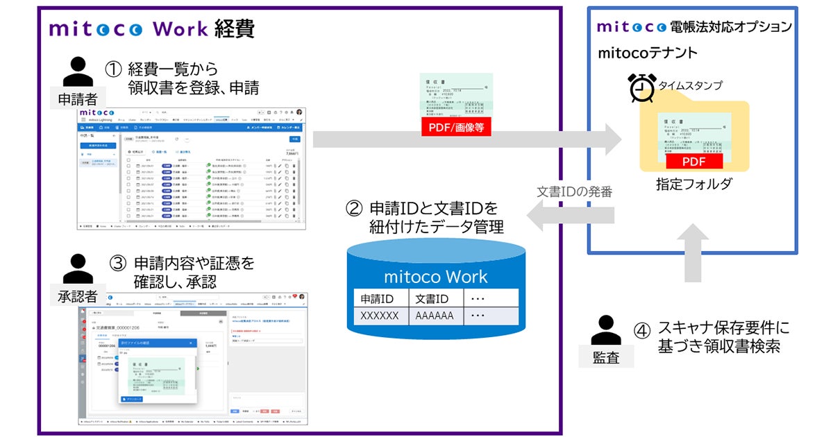 ■mitoco Work 経費と電帳法対応オプションの連携図