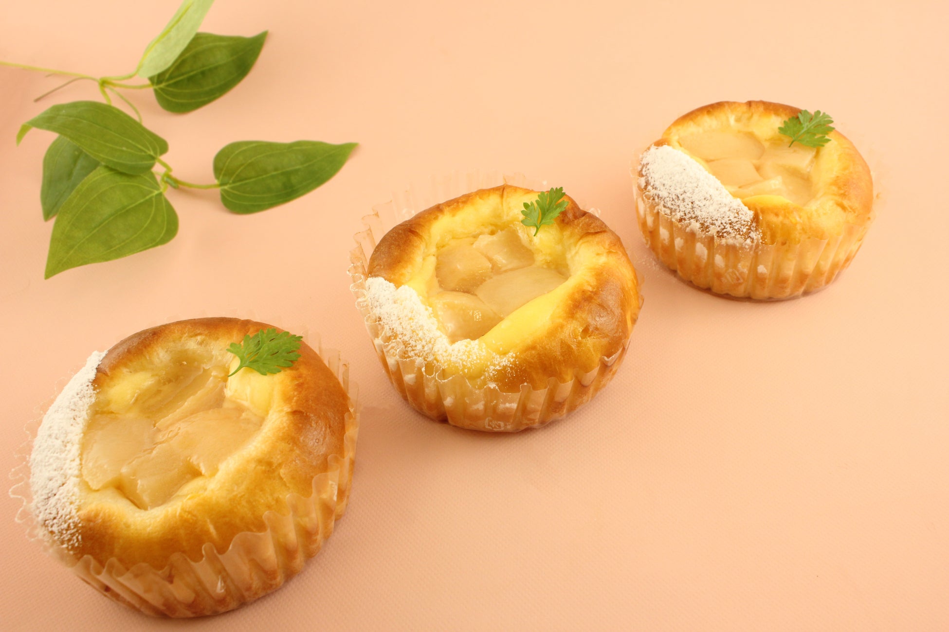 ソフトなブリオッシュ生地にチーズケーキフィリングと国産の白桃をトッピングし焼き上げました。