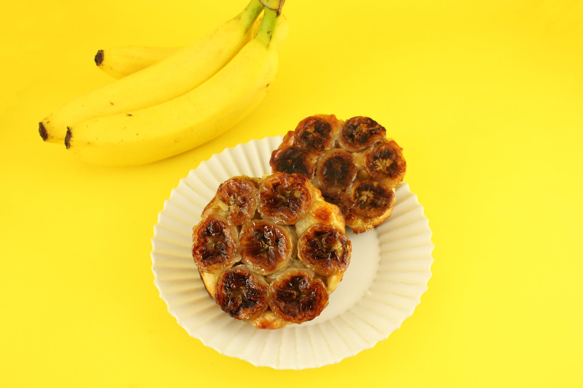 ザクザクのデニッシュ生地にくるみとグラニュー糖を折り込み、バナナをトッピングし焼き上げました。