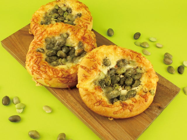 フランス産クリームチーズと丹波黒枝豆を、コーングリッツを使用したもっちりとした生地にトッピングし焼き上げました。ガーリック風味に味付けした枝豆とチーズの相性の良さには思わずビックリ!