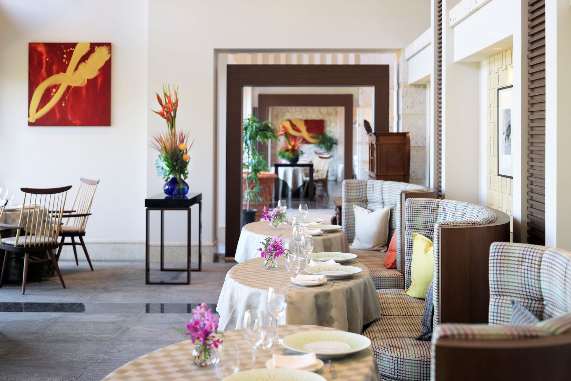 プール付きヴィラスイート。どの部屋にも沖縄の風土を感じられるアートが飾られている
