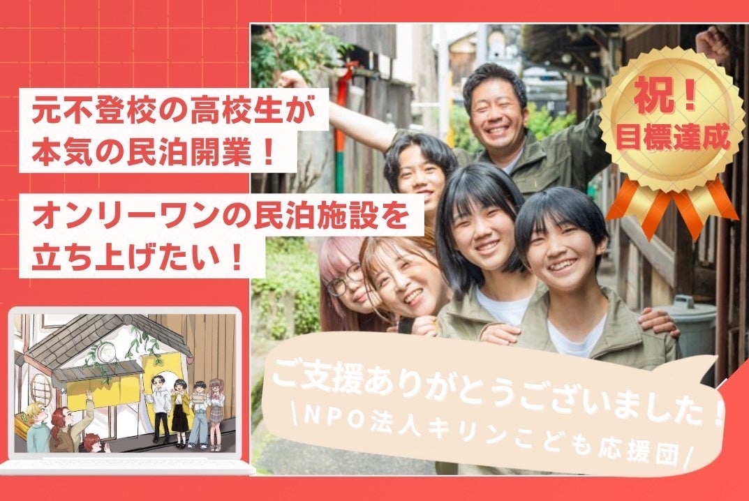 2024年4月に開校したフリースクール「キリンのとびら高等部」では、子ども達が「どのように働くか」や「どのように生きるか」など、さまざまな選択肢をもって未来へ歩んでいくという考えのもと、空き家を活用した民泊施設の立ち上げ・運営を目指して取り組んでまいりました。