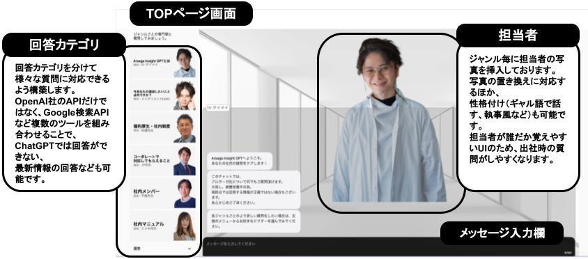 2023年4月に、OpenAI社のAPIを活用し、社内ローカル情報で学習させた社内FAQである「Arsaga Insight Engine powered by GPT」を展開しました。