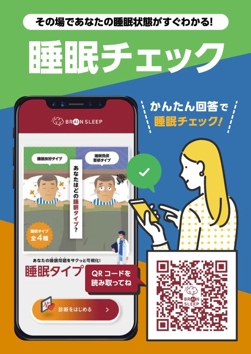 ブレインスリープピロー、マットレス、コンフォーターをお試しいただけるだけでなく、店頭にてQRコードを読み取り、その場でお客さまご自身の睡眠をチェックできる「睡眠タイプ診断コーナー」を設置します。商品の体験だけでなく、お客さま自身の睡眠状態を可視化して幅広いお客さまに睡眠を見つめ直していただく機会を提供します。