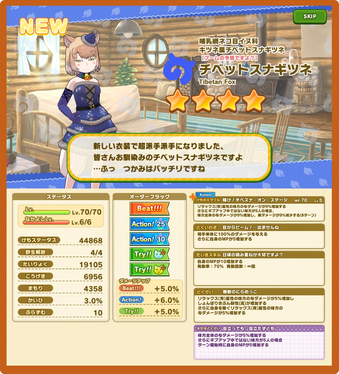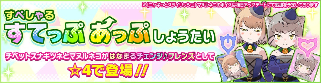 本日12月24日(金)より、☆4「【ブームの予感ですよ?】チベットスナギツネ」、☆4「【ニャギっとスタイリッシュ】マヌルネコ」の出現確率がアップする「すぺしゃるすてっぷあっぷしょうたい」を開催します。