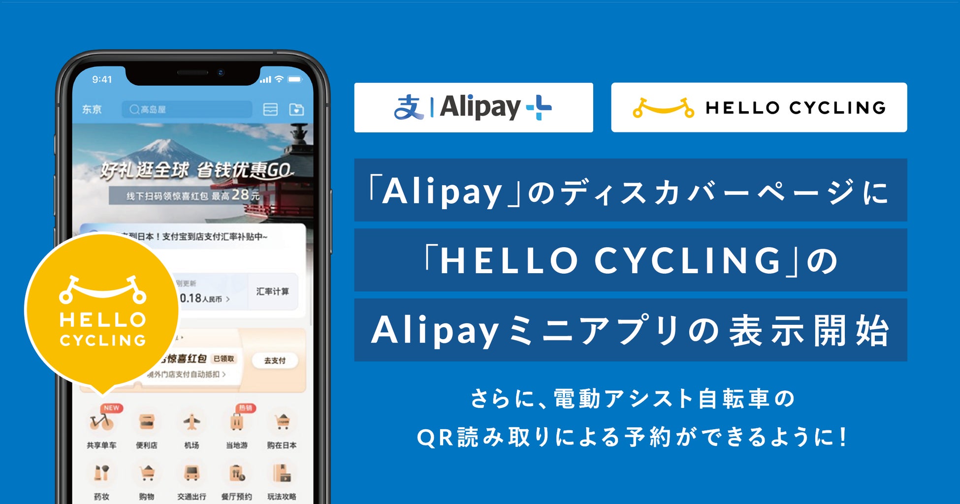 OpenStreet株式会社(本社:東京都港区、代表取締役社長CEO:工藤 智彰、以下「OpenStreet」)は、アントグループ(CEO:井賢 棟)が展開する中国最大級決済サービスで、「Alipay+(アリペイプラス)」の提携Eウォレットである「Alipay(アリペイ、中国語:支付宝)」内で提供している「HELLO CYCLING」が利用できるミニアプリにおいて、「Alipay」アプリのディスカバー(中国語:恵出境)ページへの表示を2024年4月25日から開始したことをお知らせします。さらに、ステーション看板上POPのQRや電動アシスト自転車に搭載しているスマートロックのQRを読み取るだけで自転車の予約が完了する機能の提供を開始しました。