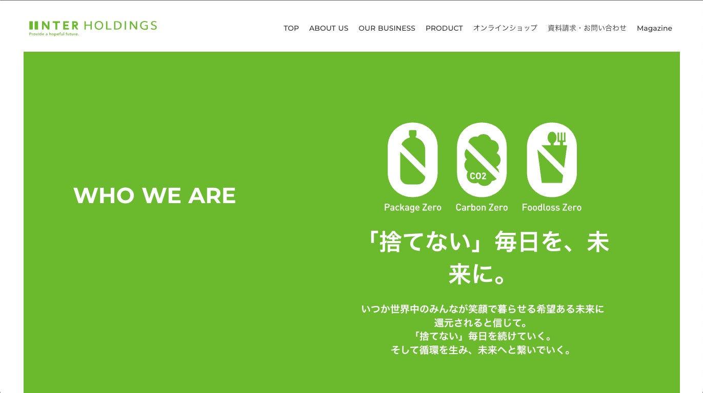 事業内容:“「捨てない」毎日を、未来に”をスローガンとして掲げ、インターホールディングスが保有する世界唯一の“超高真空特許技術”を活用し、フードロス・GHG(温室効果ガス)などの地球課題の解決を通じ、循環型社会の発展に寄与することを目指すクライメートテックスタートアップ。