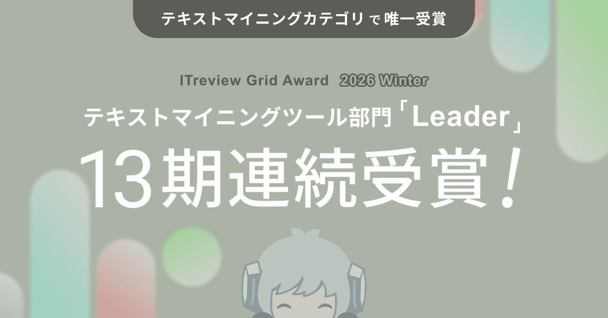 株式会社レトリバ(本社:東京都豊島区、代表取締役 田口琢也)が提供する分析AIツール「YOSHINA」が、アイティクラウド株式会社主催の「ITreview Grid Award 2026 Winter」テキストマイニングツール部門において、顧客満足度と認知度の双方が高く評価され、最高位『Leader』を受賞しました。「ITreview Grid Award 2025 Fall」に引き続き13期連続での獲得となります。