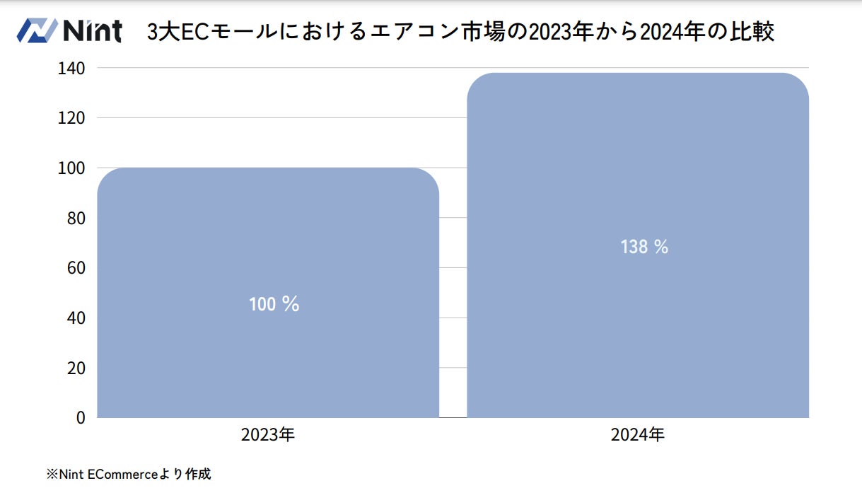 ECモールのエアコン市場規模は、1.38倍で急速に拡大(2024年4月~6月)