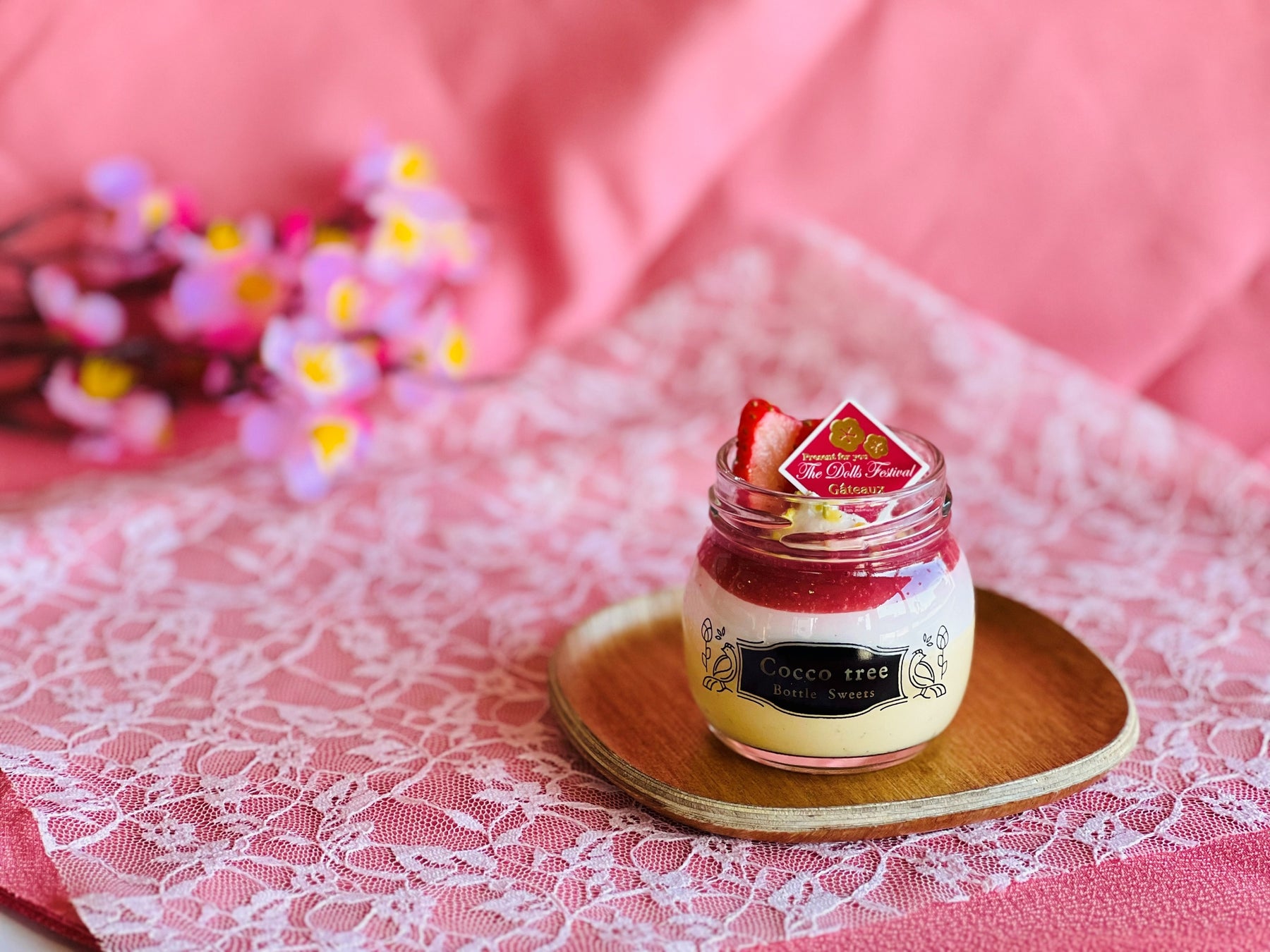 Cocco treeの看板商品“とろ~りなめらかこっこぷりん”の上には、濃厚なレアチーズムース・甘酸っぱいストロベリーソースをのせました。ぷりんの優しい甘さとレアチーズの酸味のバランスが絶妙でお子様から大人の方まで楽しめるぷりんに仕上げました。ひな祭りらしく、かわいらしい見た目にもこだわった特別ぷりんをどうぞお楽しみください。