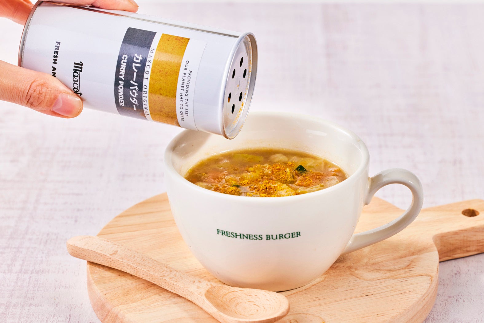 野菜の甘みとカレーの程良いスパイスで優しいカレー味のスープに変身。