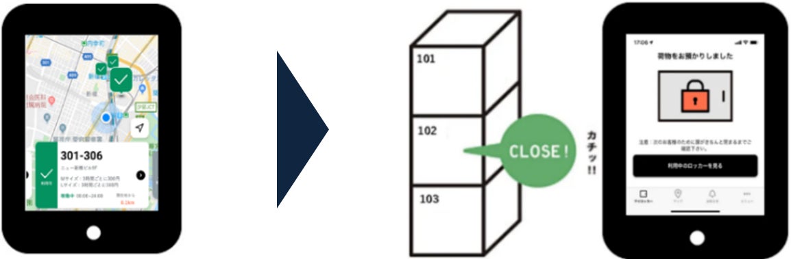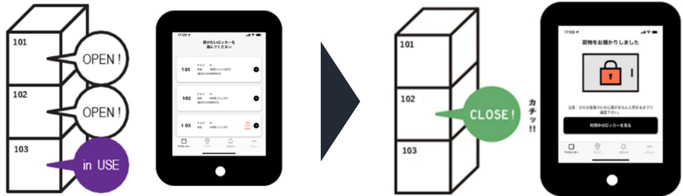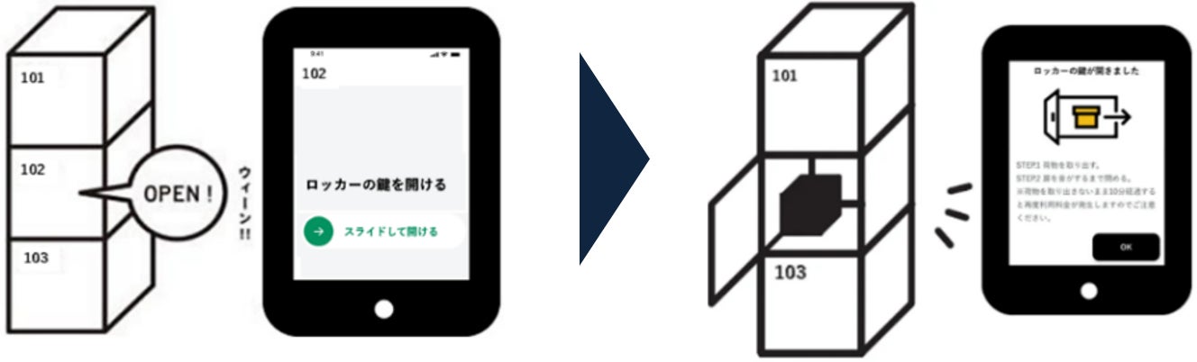 ※ロッカーの開錠に決済が必要な場合、決済の後にロッカー開錠が可能となります。扉を閉めると、ロッカーの鍵は自動で施錠されます。