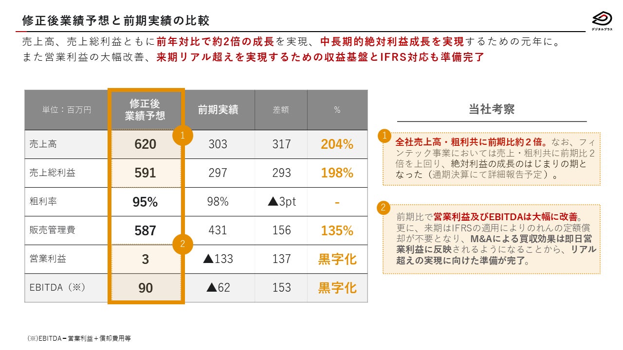 当社は、来期リアル超えの達成に向けて、GAFAメディア事業の方向性の整理、IFRS適用を始めとして今期中にしっかりと準備を進めてまいりました。また、今般の業績予想の修正及びGAFAメディア事業の方向性について、本プレスリリースにてお示しした資料に基づいて詳細をご説明する動画を発表させて頂いておりますので、併せてご参照ください。
