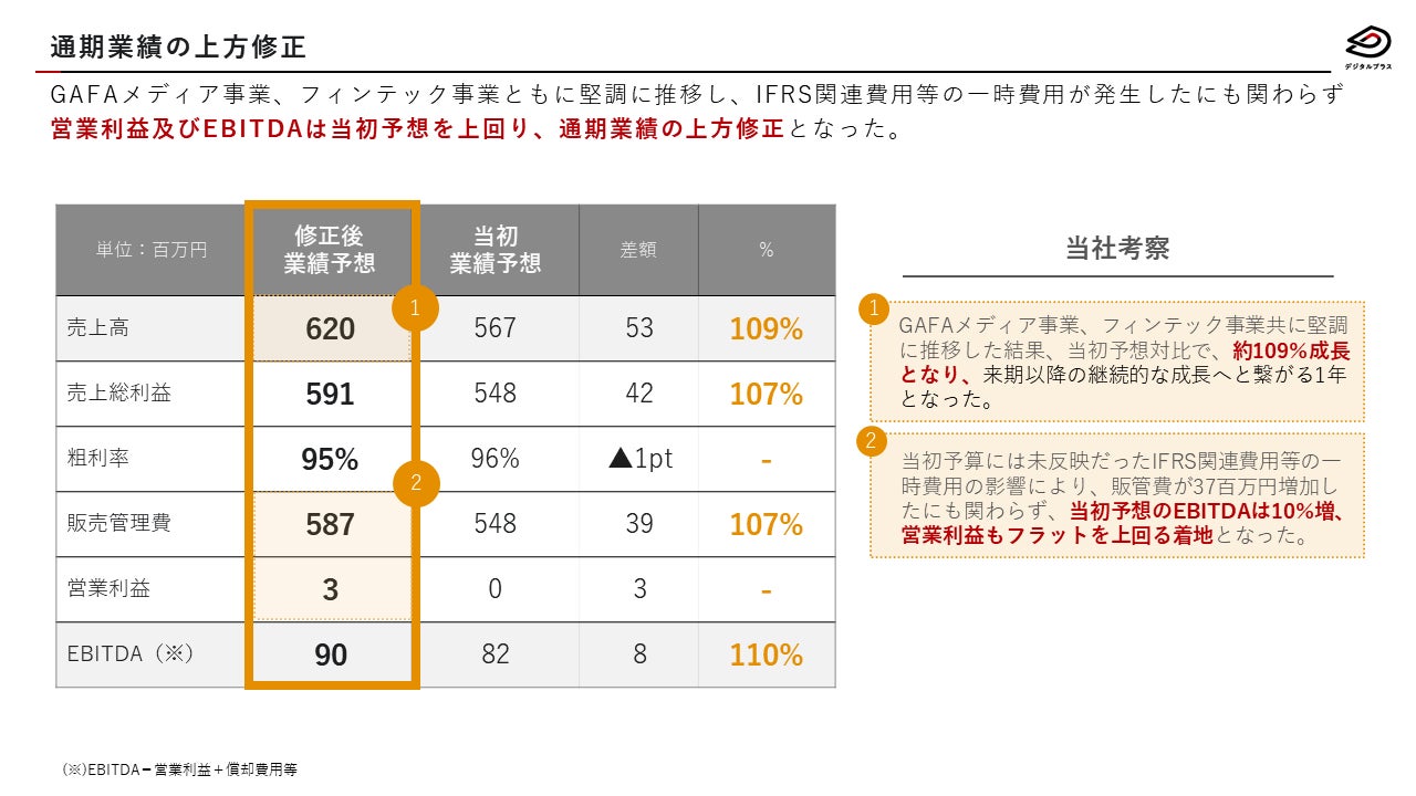 デジタルプラス、2022年9月期通期業績を上方修正!GAFAメディア事業にてメディア売却を実施