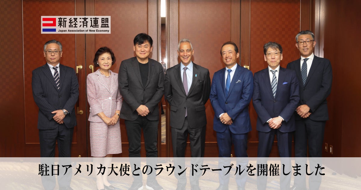 一般社団法人新経済連盟(所在地:東京都港区、代表理事:三木谷 浩史、以下「新経連」)は、4月12日、ラーム・エマニュエル駐日米国大使をお迎えし、ラウンドテーブルを開催しました。