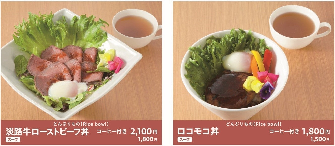 淡路牛のローストビーフ丼やエディブルフラワーをあしらったカレーやパフェなど、おいしさに加えて写真映えする盛り付けにも花さじきらしさを追及しています。